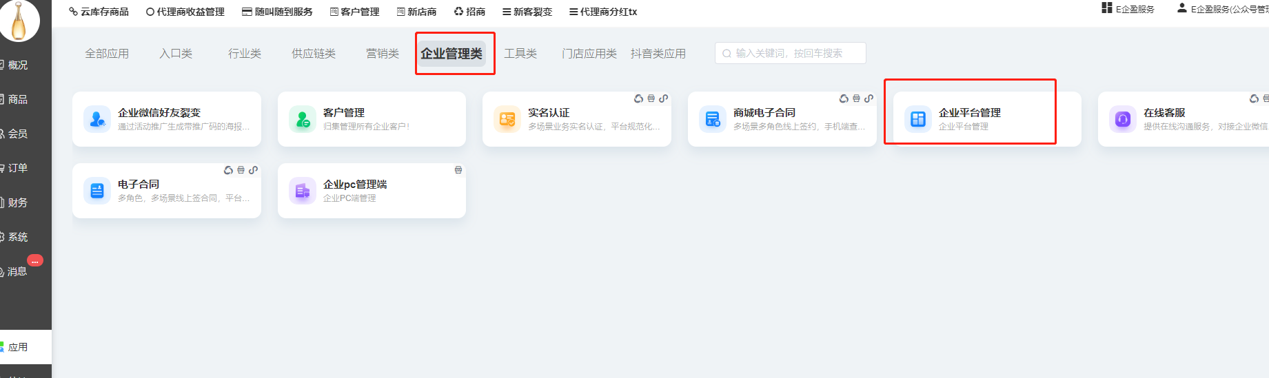 应用--企业管理类--企业平台管理插件进行企业管理;